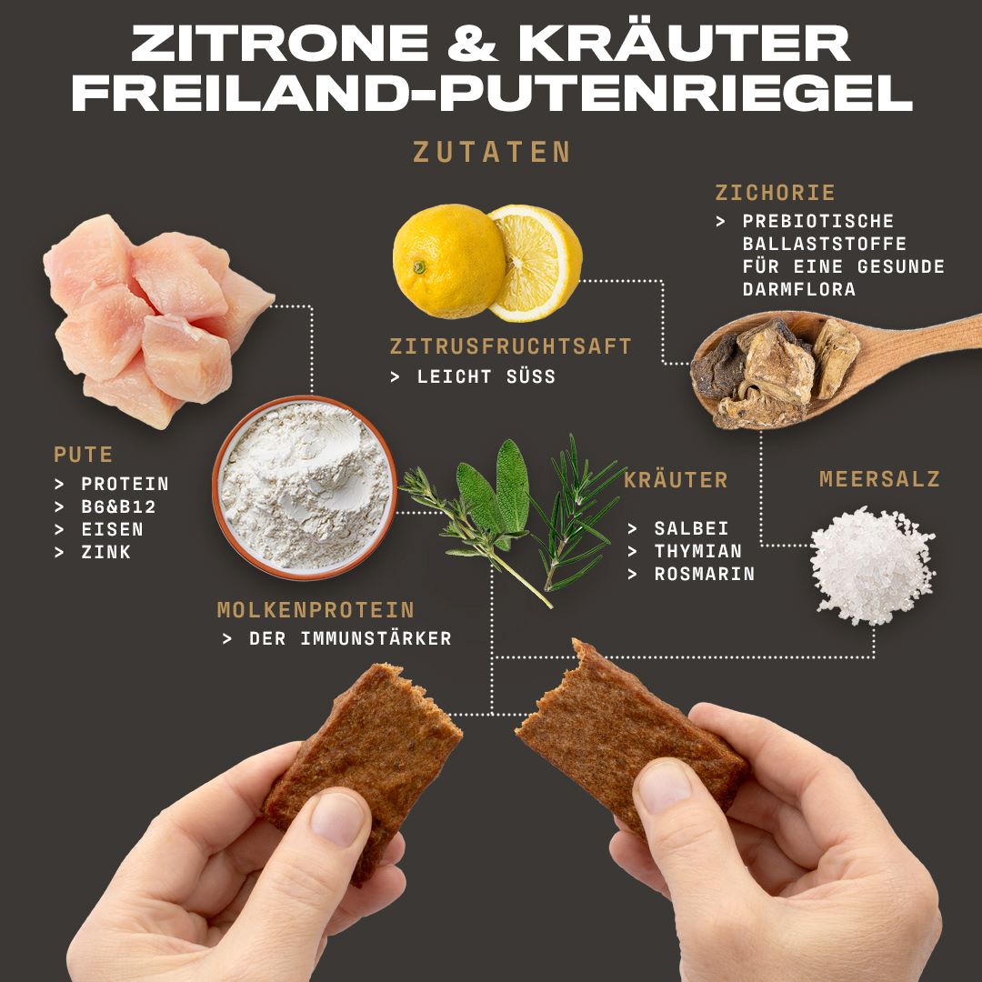 Freiland-Truthahnriegel mit klassischem Zitronen-Kräuter-Geschmack.