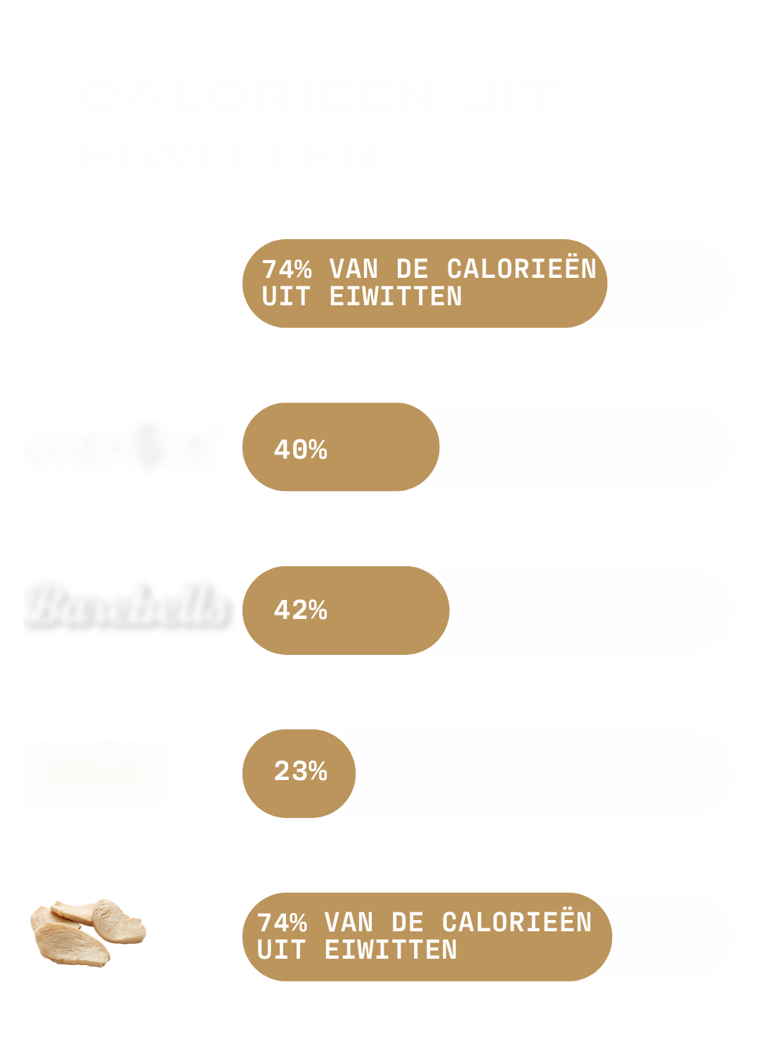 - Meer eiwitten dan welke andere reep of zak dan ook (gram voor gram)